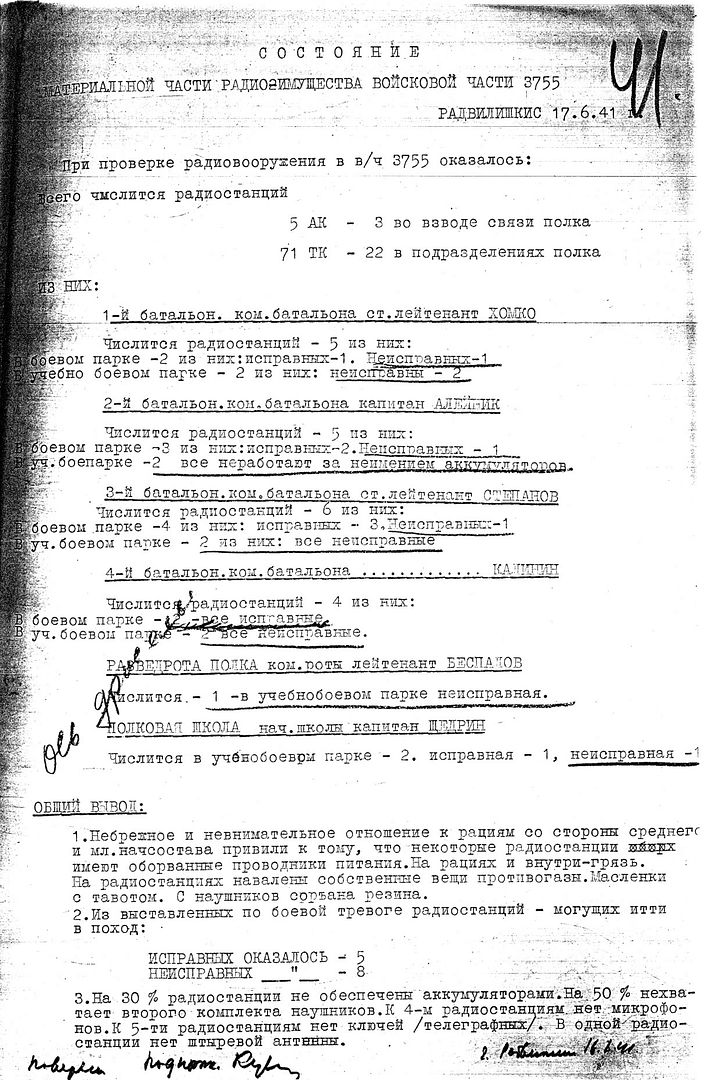 «В подготовке связистов встречаются ряд затруднений связных с формированием и неукомплектованностью младшим и средним начсоставом, так в ОБС 7486 младшего начсостава положено 91, имеется 10 человек, среднего начсостава положено 36, имеется 16.